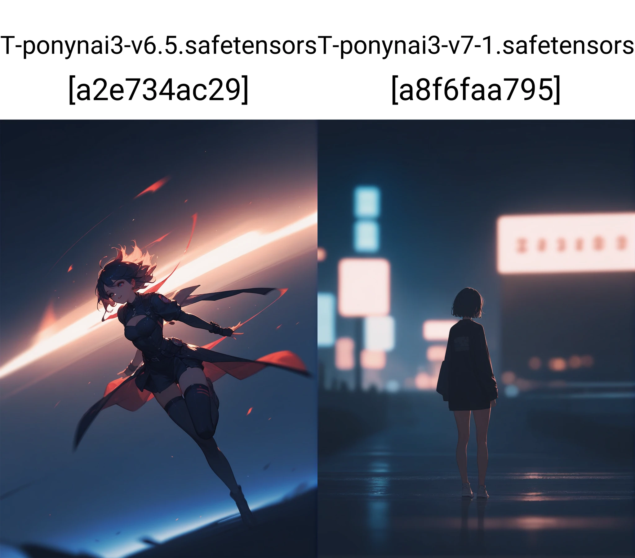 T-ponynai3 is a Stable Diffusion checkpoint model designed to generate anime-style images, building upon the nai3 and ponyv6 models. It includes a built-in VAE and supports prompts for fine-tuning image details using style_1 to style_4. The model aims to produce high-quality images with improved scenes, finger and foot details, and incorporates "anime" as a keyword to stabilize the nai3 art style.