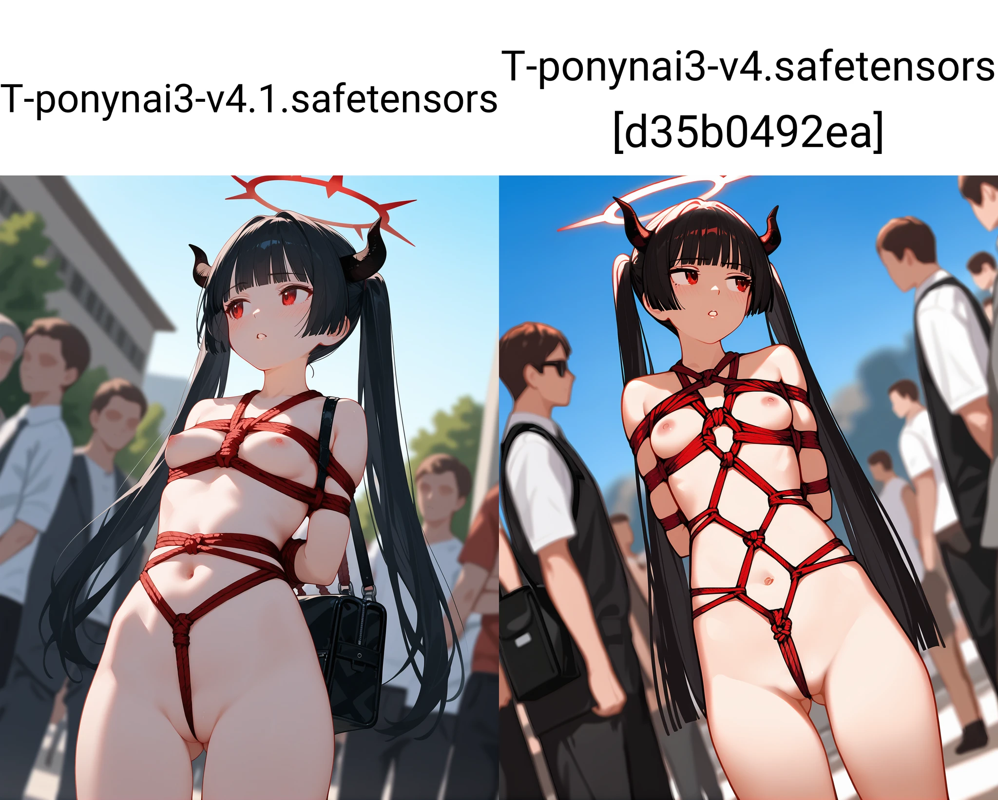 T-ponynai3 is a Stable Diffusion checkpoint model designed to generate anime-style images, building upon the nai3 and ponyv6 models. It includes a built-in VAE and supports prompts for fine-tuning image details using style_1 to style_4. The model aims to produce high-quality images with improved scenes, finger and foot details, and incorporates "anime" as a keyword to stabilize the nai3 art style.