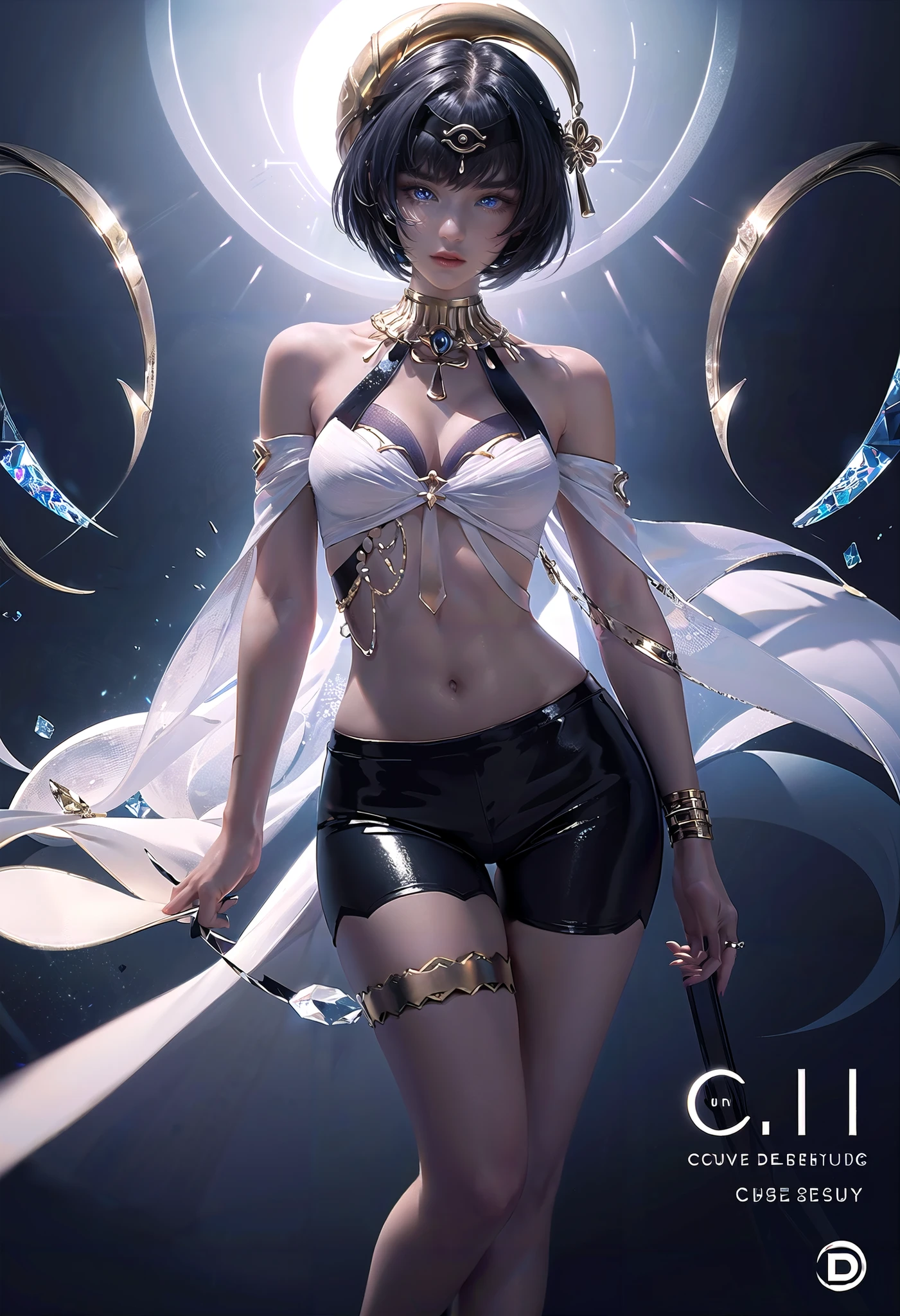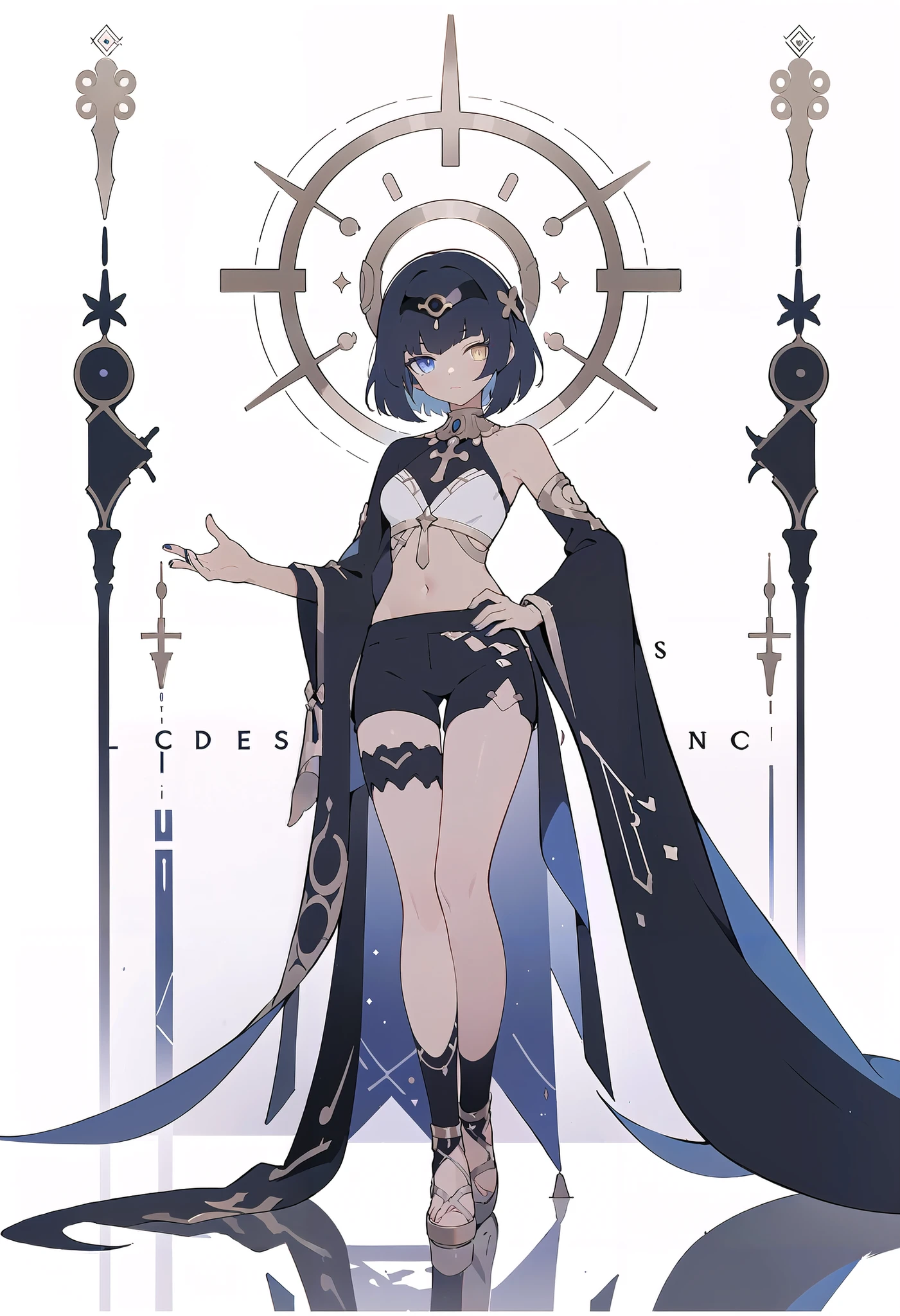 kandis, 1girl, dark skin, dark-skinned female, eye of horus, heterochromia, hair ornament, blue eye, yellow eye