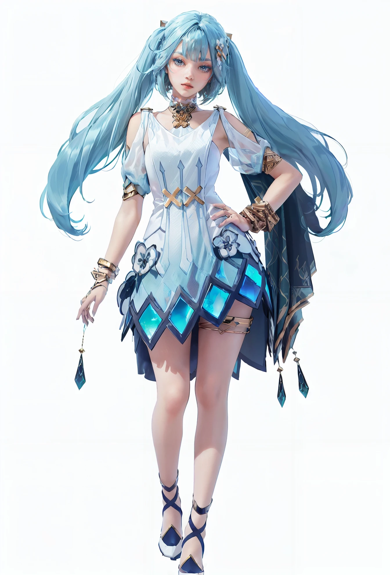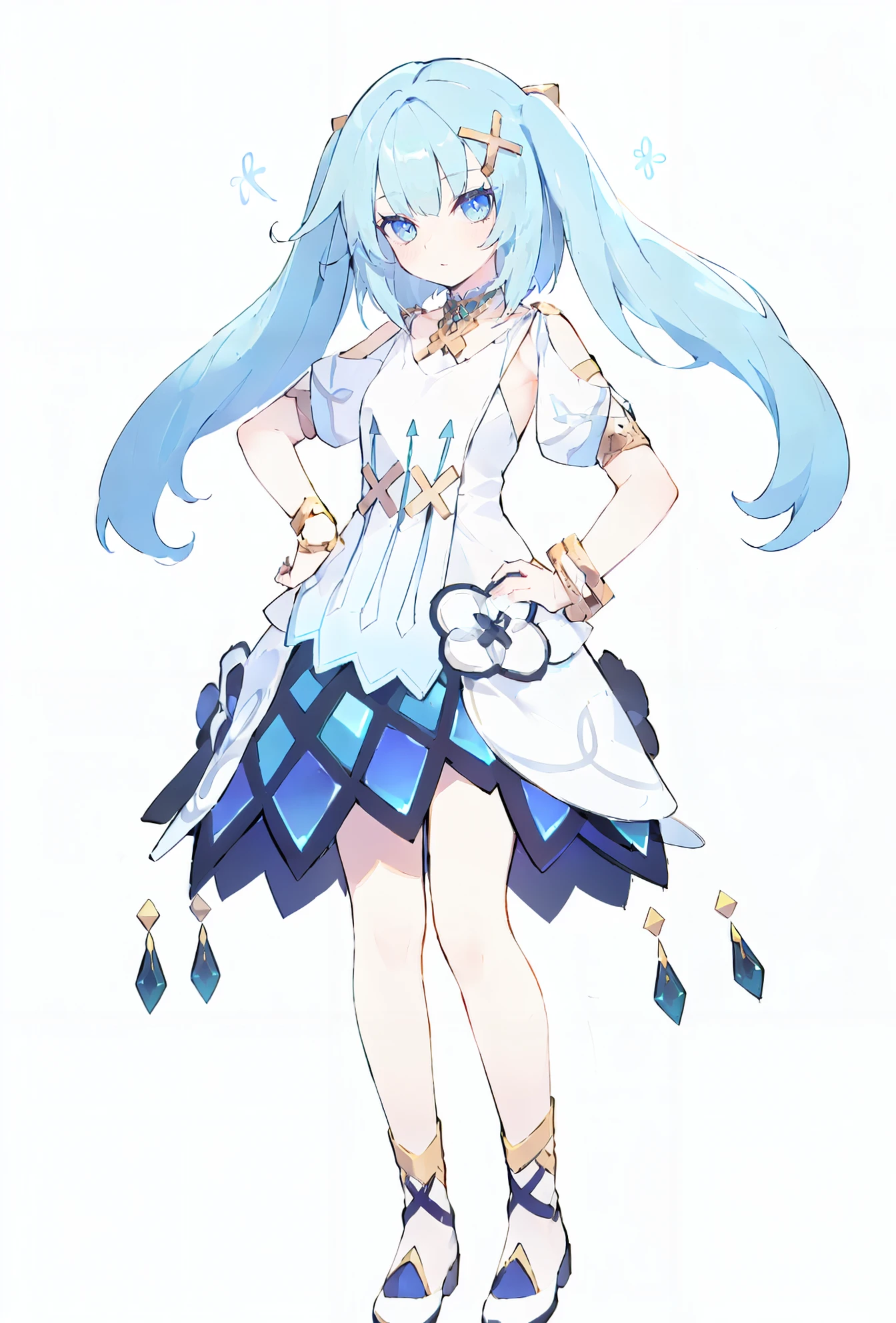 fls,def clothe,1girl,dress,jewelry,bracelet,twintails,long hair,hair ornament,bangs,Created