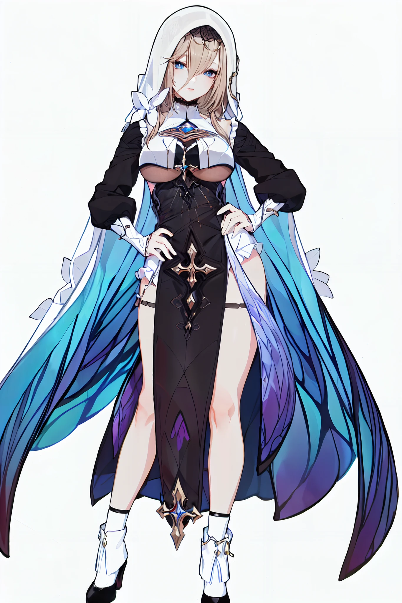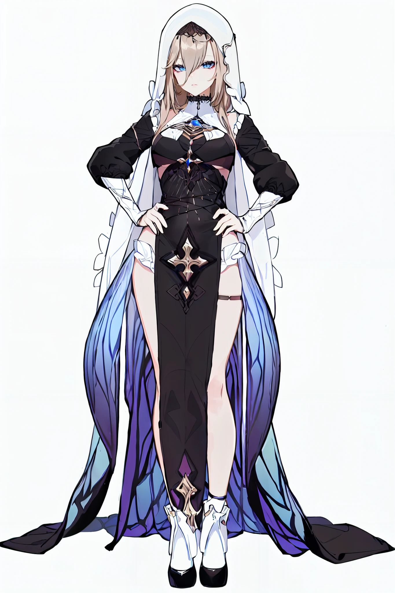 aboniya,def clothes,1girl,breasts,dress,bangs,hair between eyes,veil,nun,Created