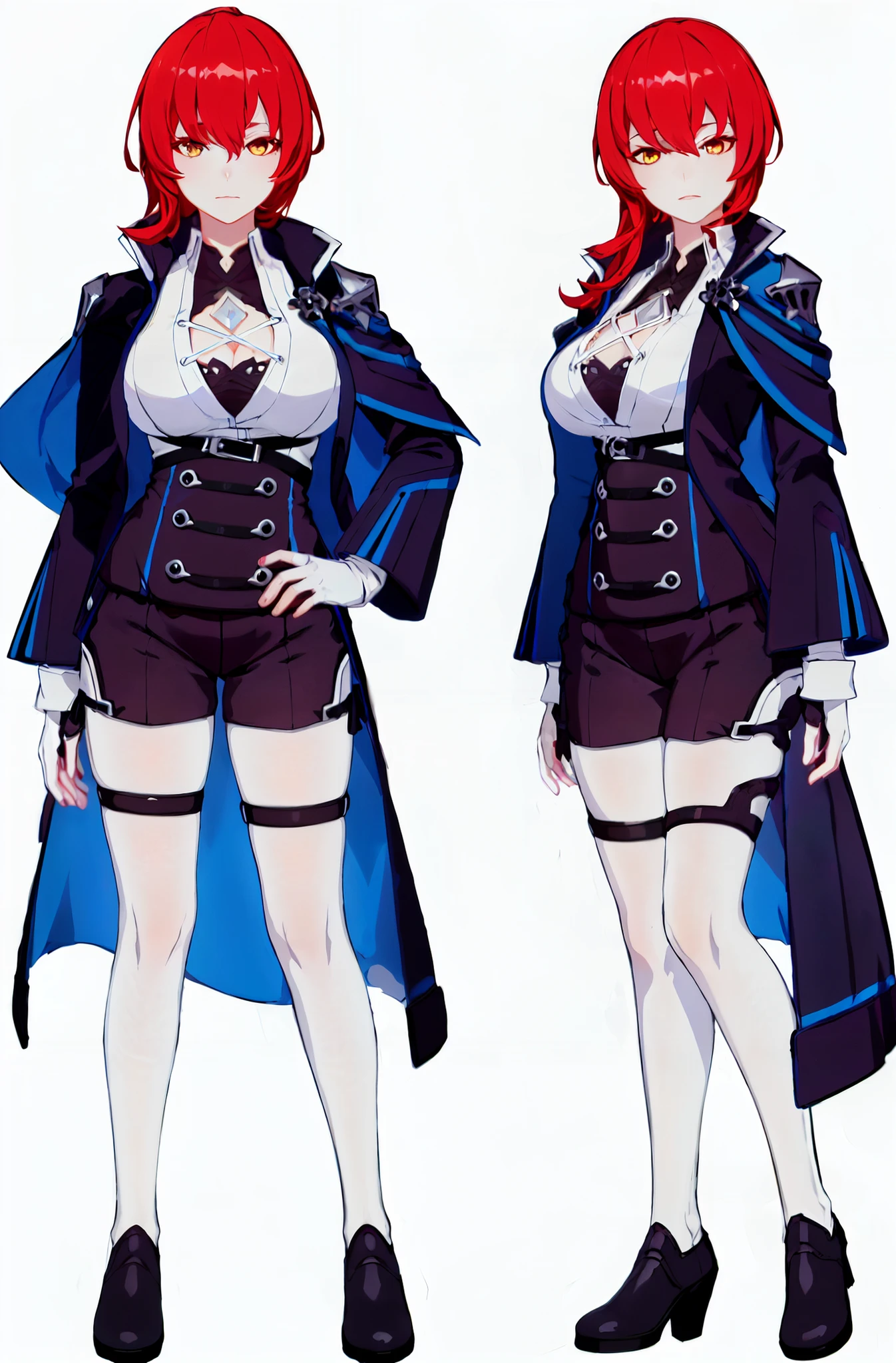 jidi,1girl,murata himeko,red hair,yellow eyes,jacket,bangs,black gloves,cleavageCreated