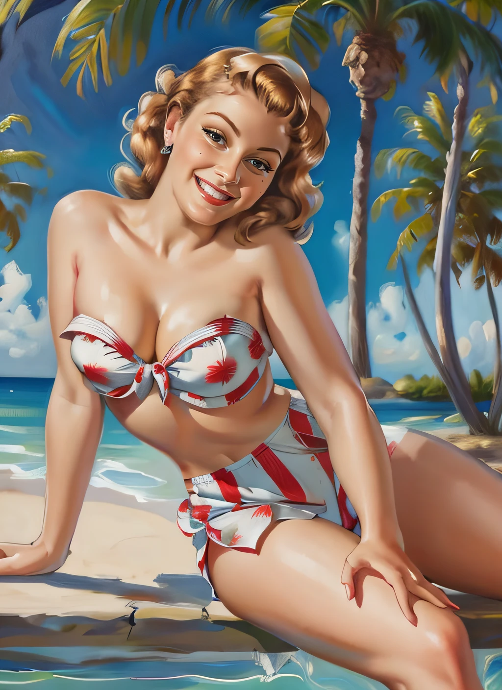 This model embodies the pin-up style of Pearl Frush, a prominent American glamour artist known for her technically brilliant and often photographic-quality illustrations. Her work, popular in mid-century calendar art, features iconic depictions of women and a notable contribution to American advertising through her rendering of Little Debbie. Frush's artistry is celebrated for its detail and contributions to the pin-up genre.