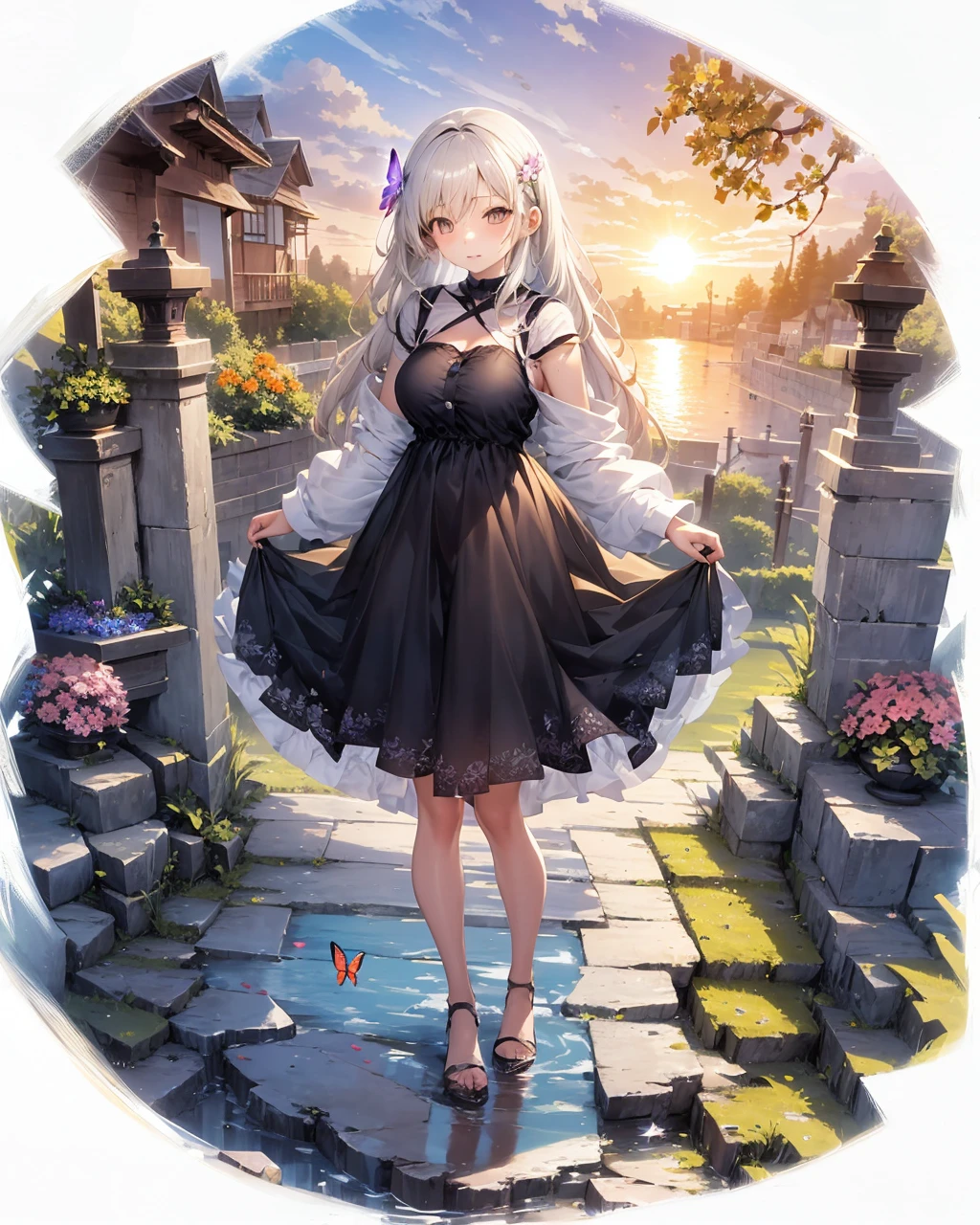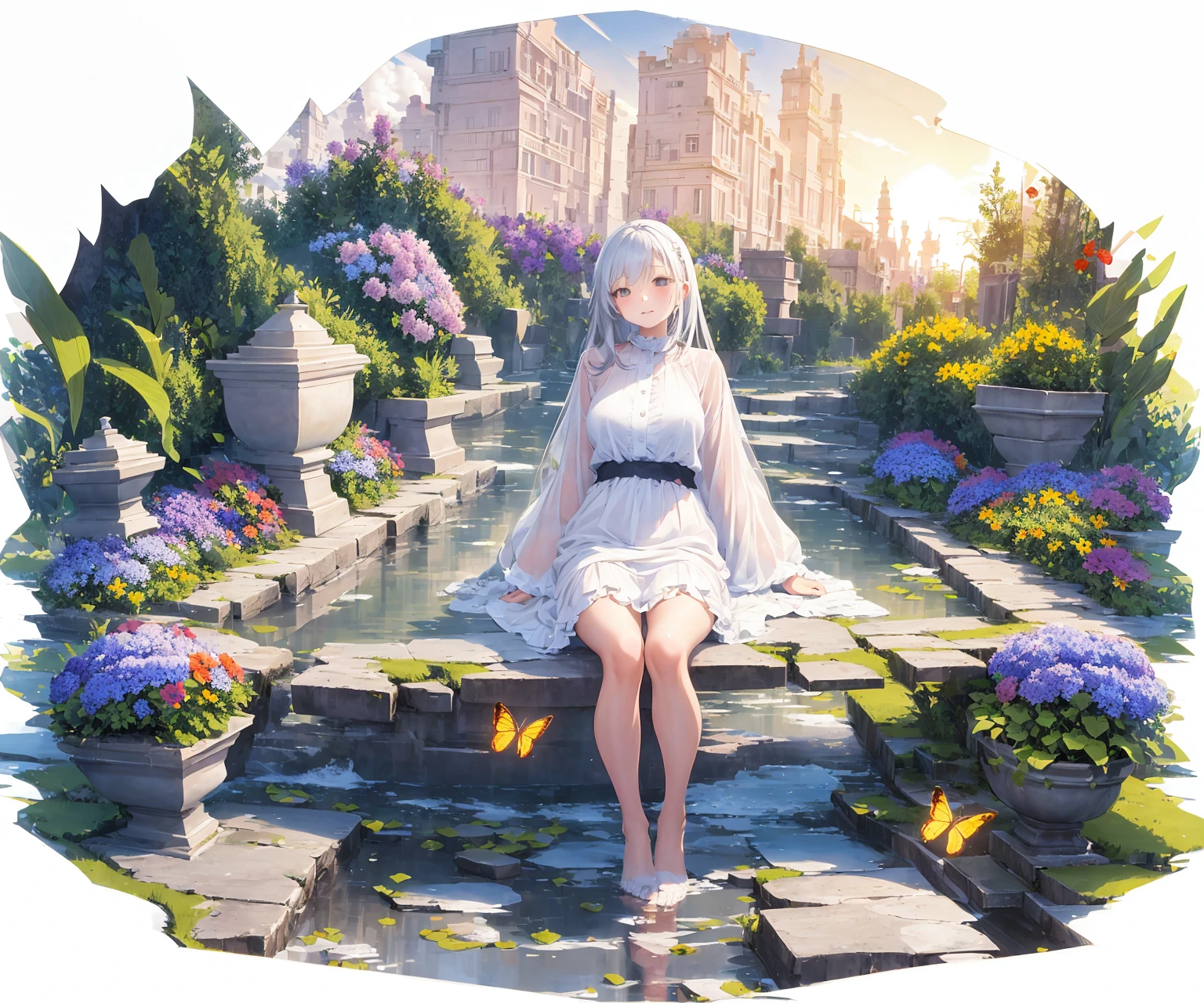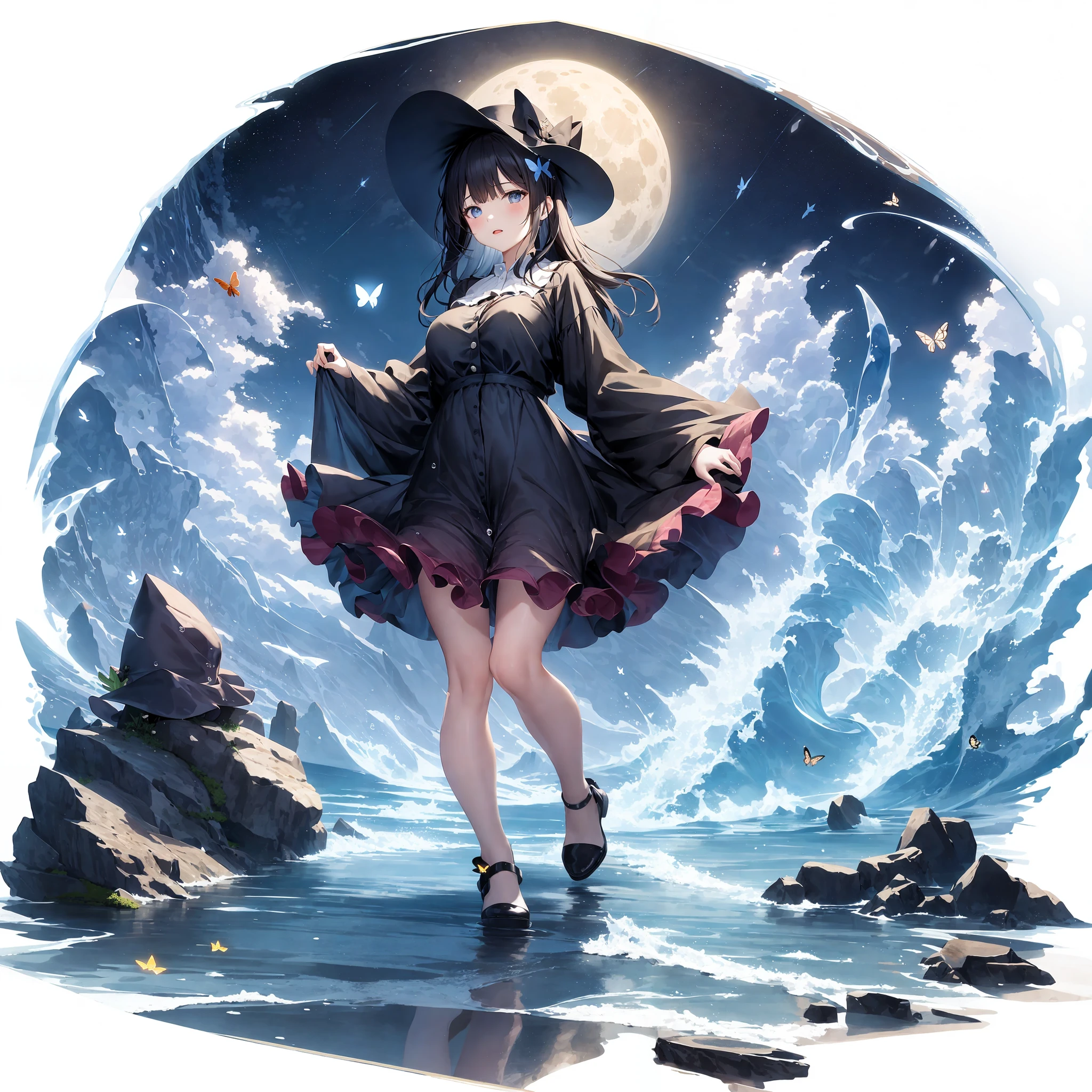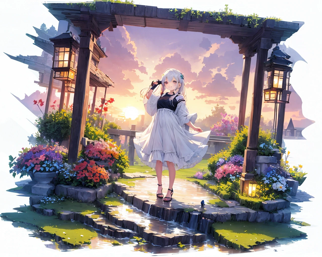 (white background:1.5), hexagon, 1 girl, mid shot, full body