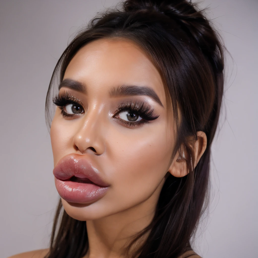 This LoRA adds large, artificial-looking lips to female characters. It was trained on a mix of real and digital images and works well with realistic and semi-realistic models. The trigger word is "bimbolips," and additional terms like "big lips" or "huge lips" can control lip size.