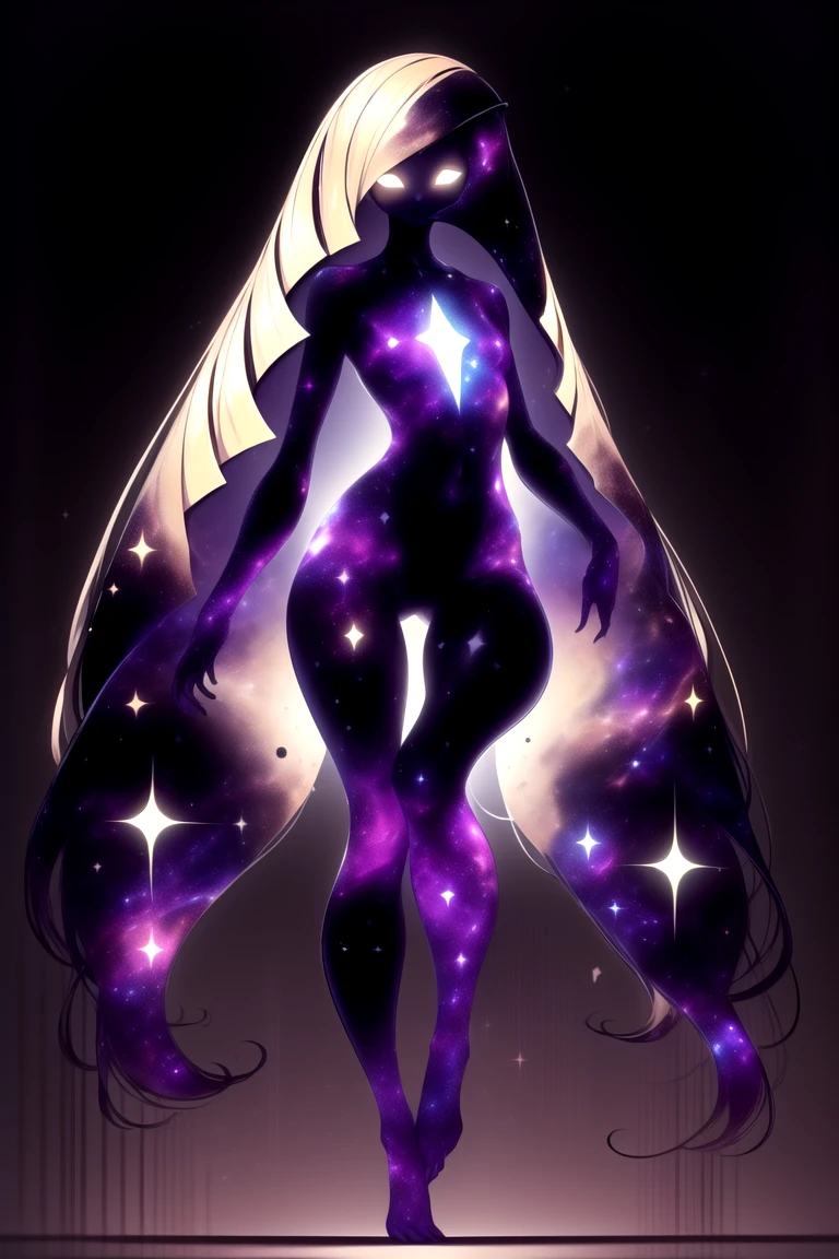 dark celestialskin body , void cosmic body, colored skin, flat color, jet black skin, silhouette