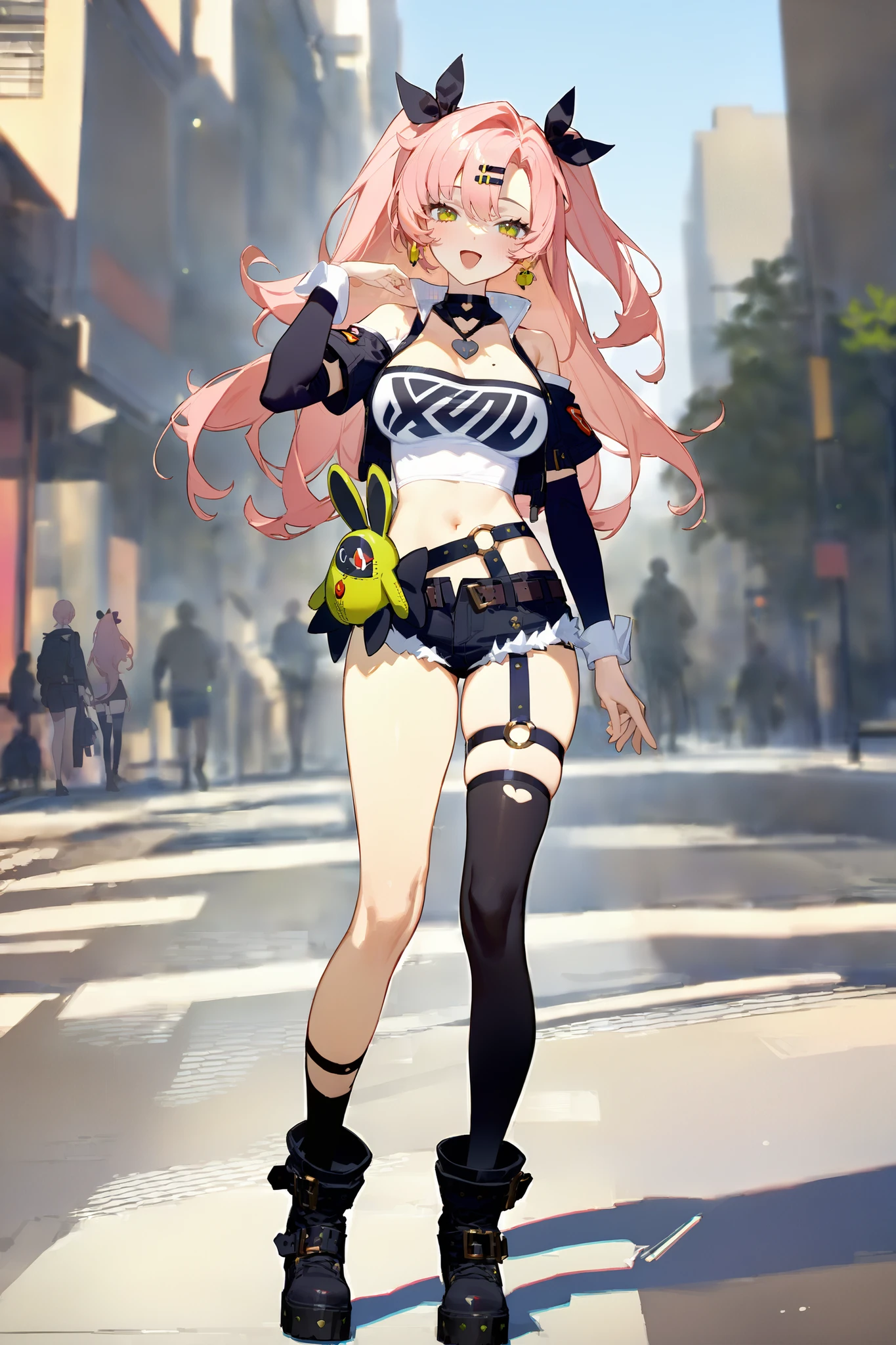 This Lora model generates images of Nicole Demara from Zenless Zone Zero, trained at 1024x1024 resolution and enhanced with 3D model data. The trigger prompt is "nicole demara", with additional prompts available to customize her default costume. It allows for easy costume modification or removal using specific prompts, with a recommended weight of 0.8~1.