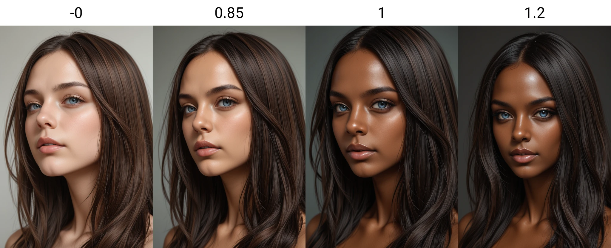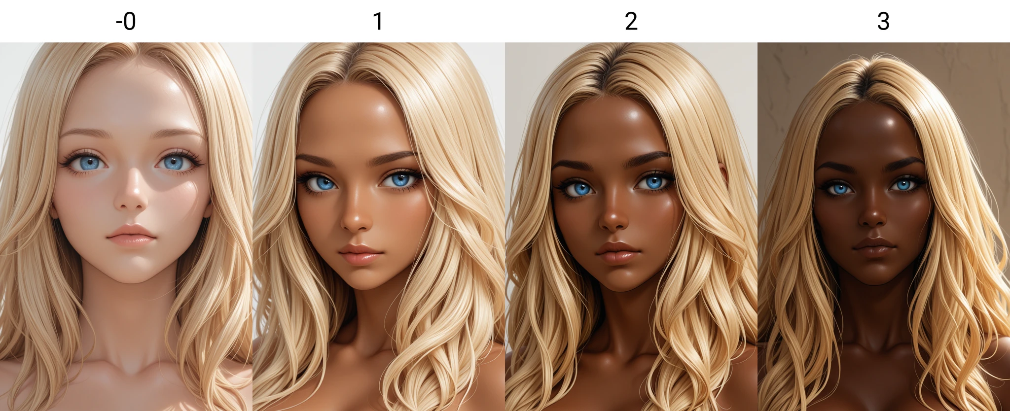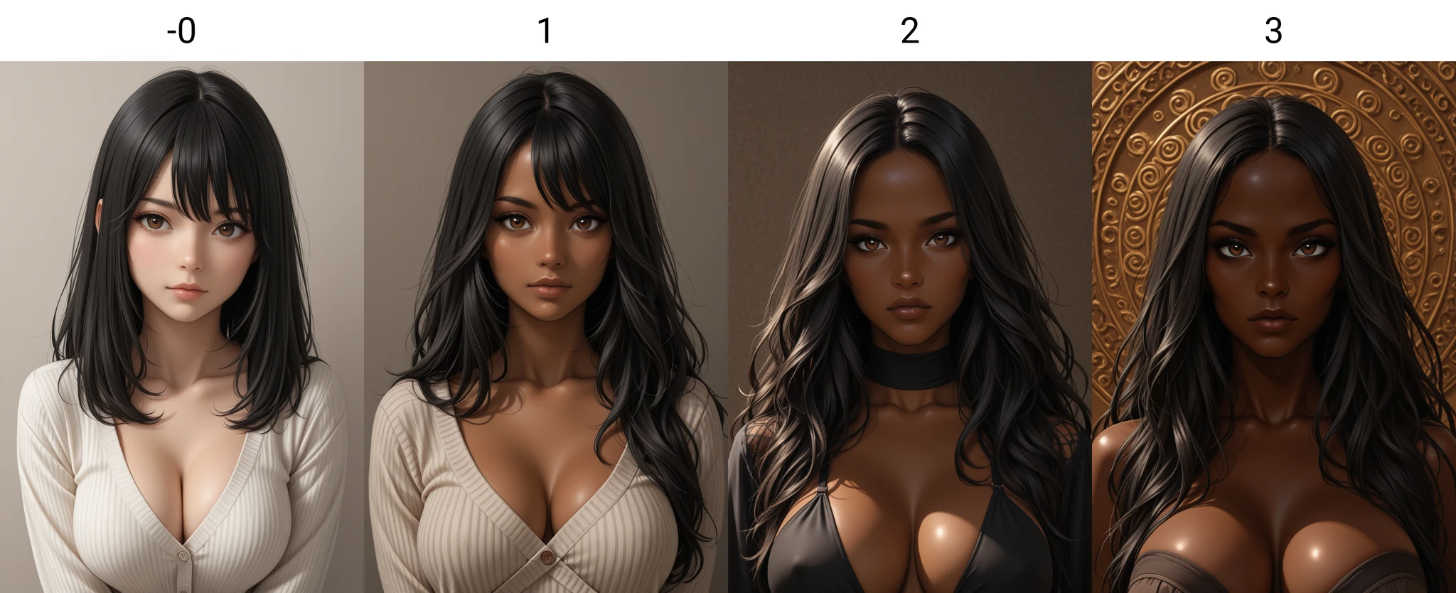 This model provides a skin color slider to adjust skin tones in generated images, especially helpful for generating diverse images. It comes in Illustrious and Pony versions, with Pony also available in 250 and 1000 iteration variants, for fine-tuning results. It works with SDXL with potentially higher weights needed.
