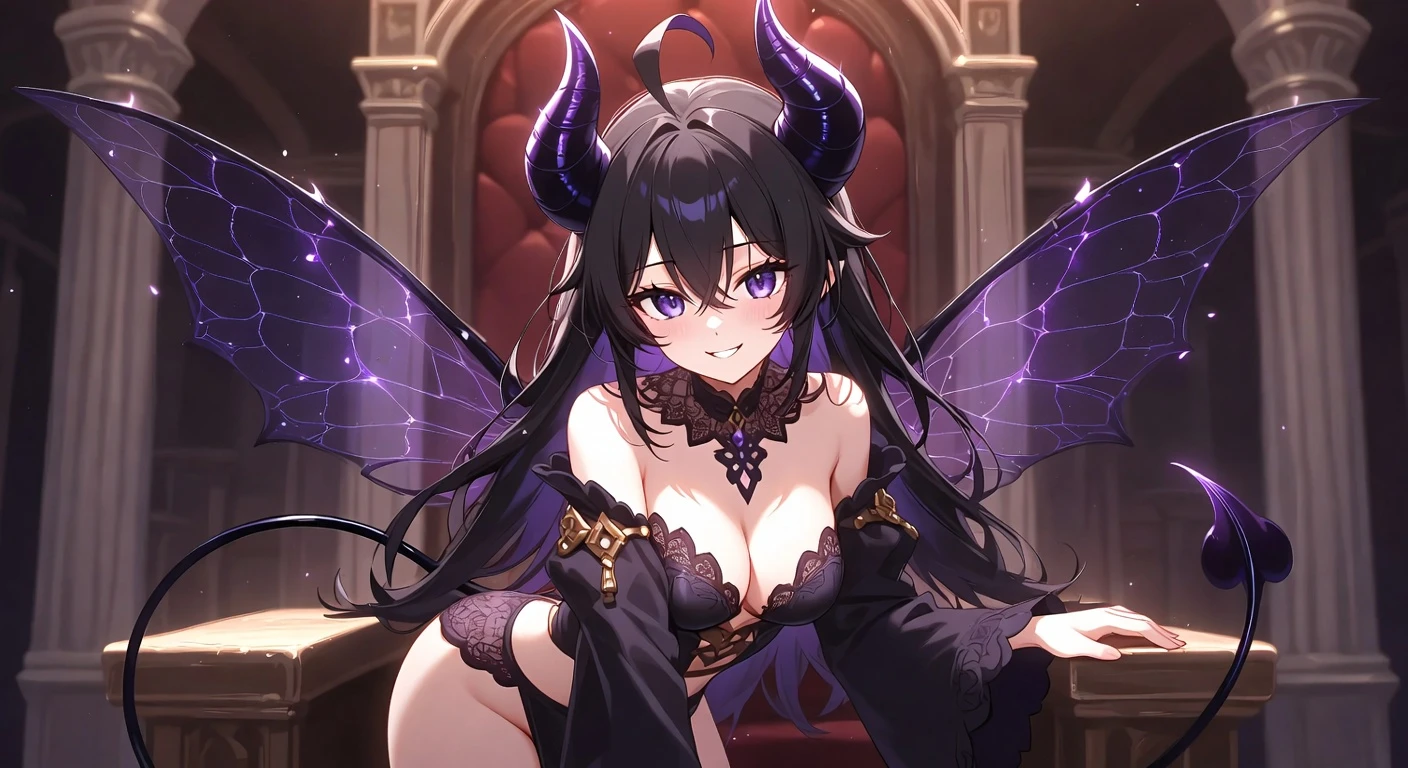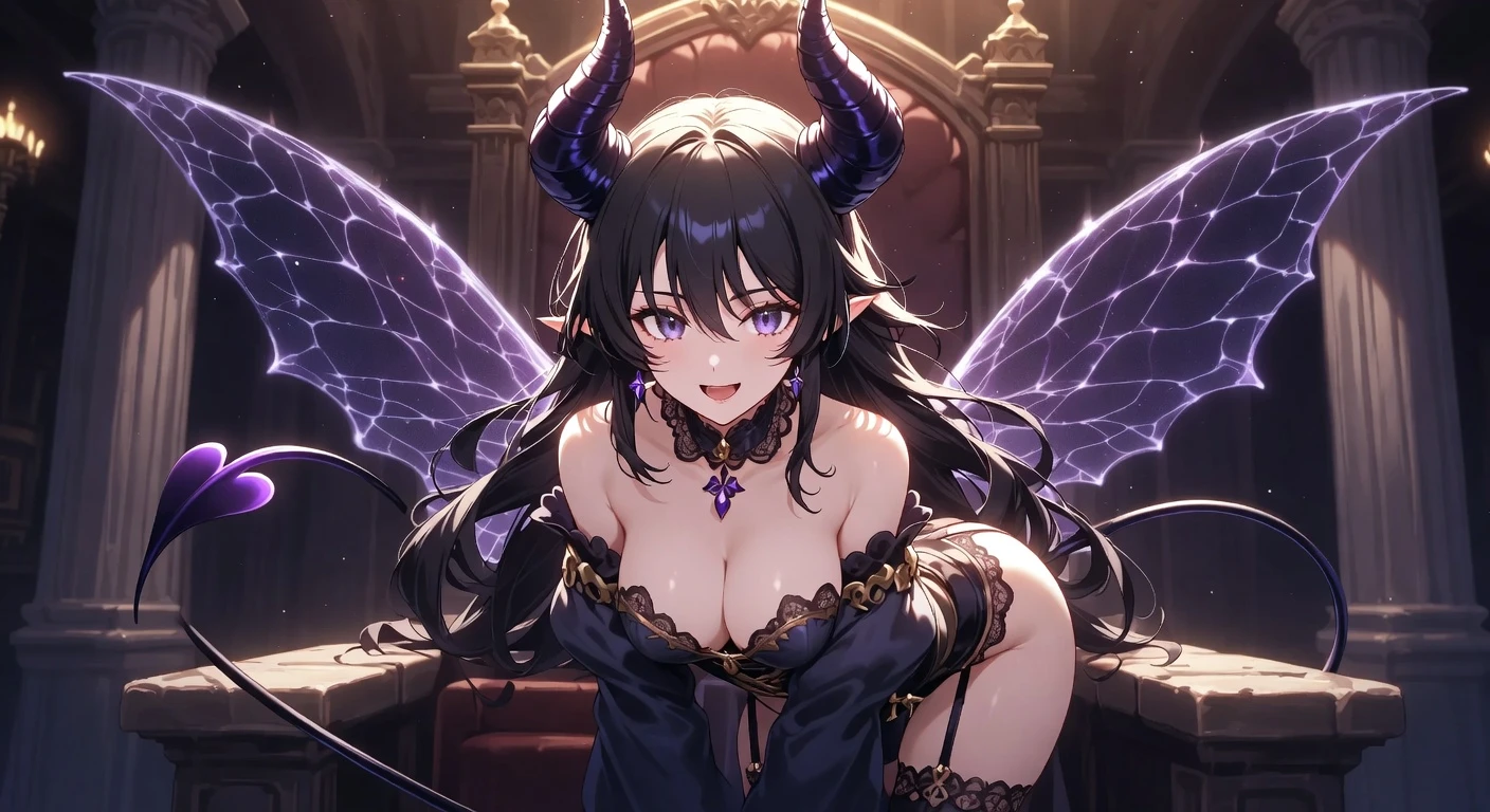 Choose your succubus archetype โ regal demon queen with grand obsidian horns, playful lesser succubus with delicate features, or fearsome arch-demon with blazing supernatural eyes. Customize horn style, wing type, tail design, outfit, and dark fantasy environment.