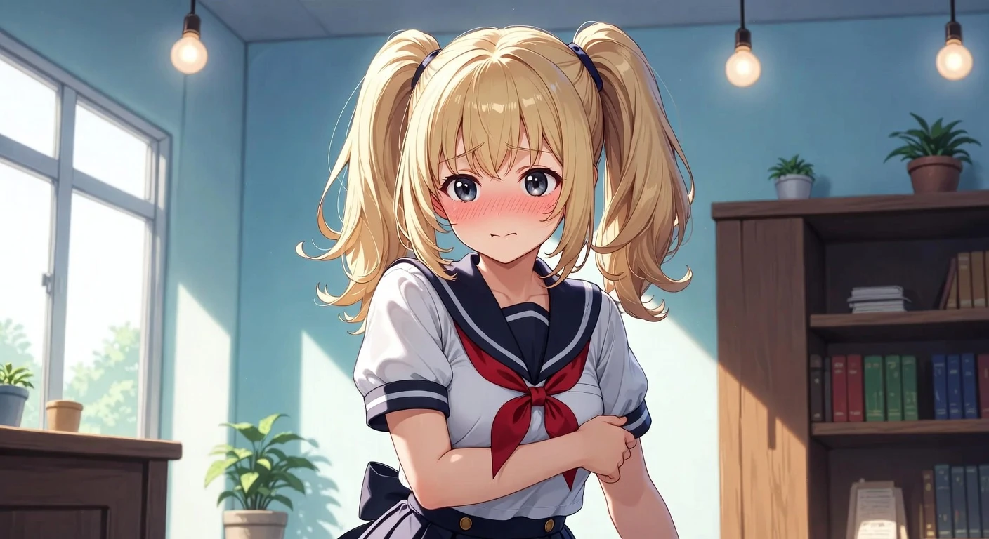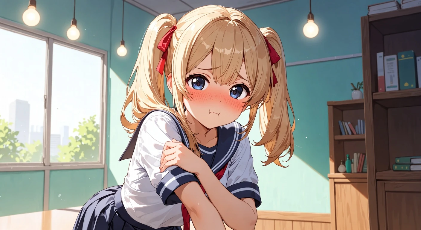 Choose classic twin-tail tsundere, cool sharp-tongued type, or modern subtle blusher. Set expression intensity, select an outfit, pick a signature pose (crossed arms, looking away, reluctant hand-hold), and drop her into the perfect scene.